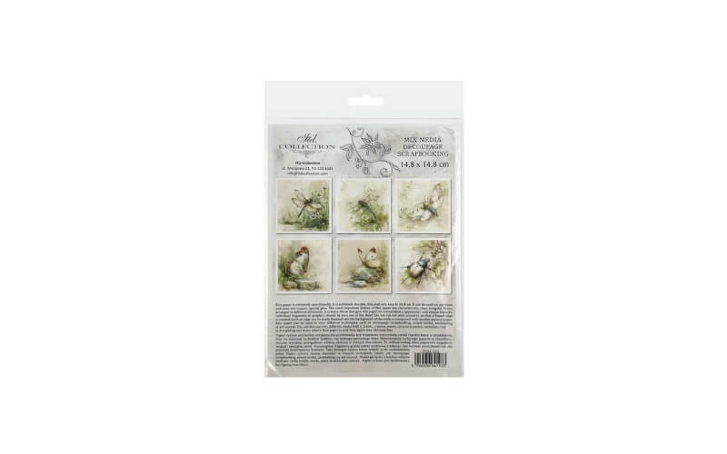 Mini Rijstpapier Set Aarde Itd Collection. 6 vellen rijstpapier 14,8×14,8 cm met insecten en botanische natuurmotieven. Ideaal voor scrapbooking en decoupage.